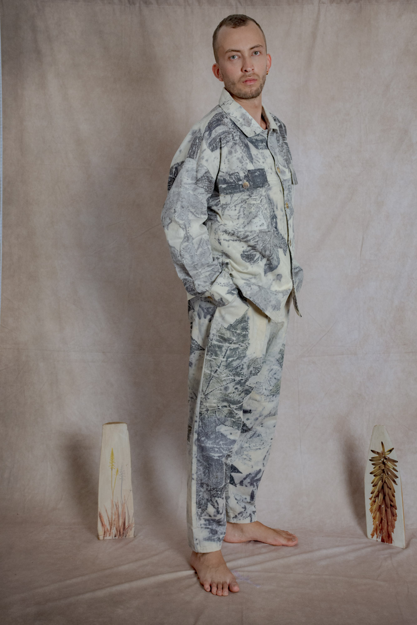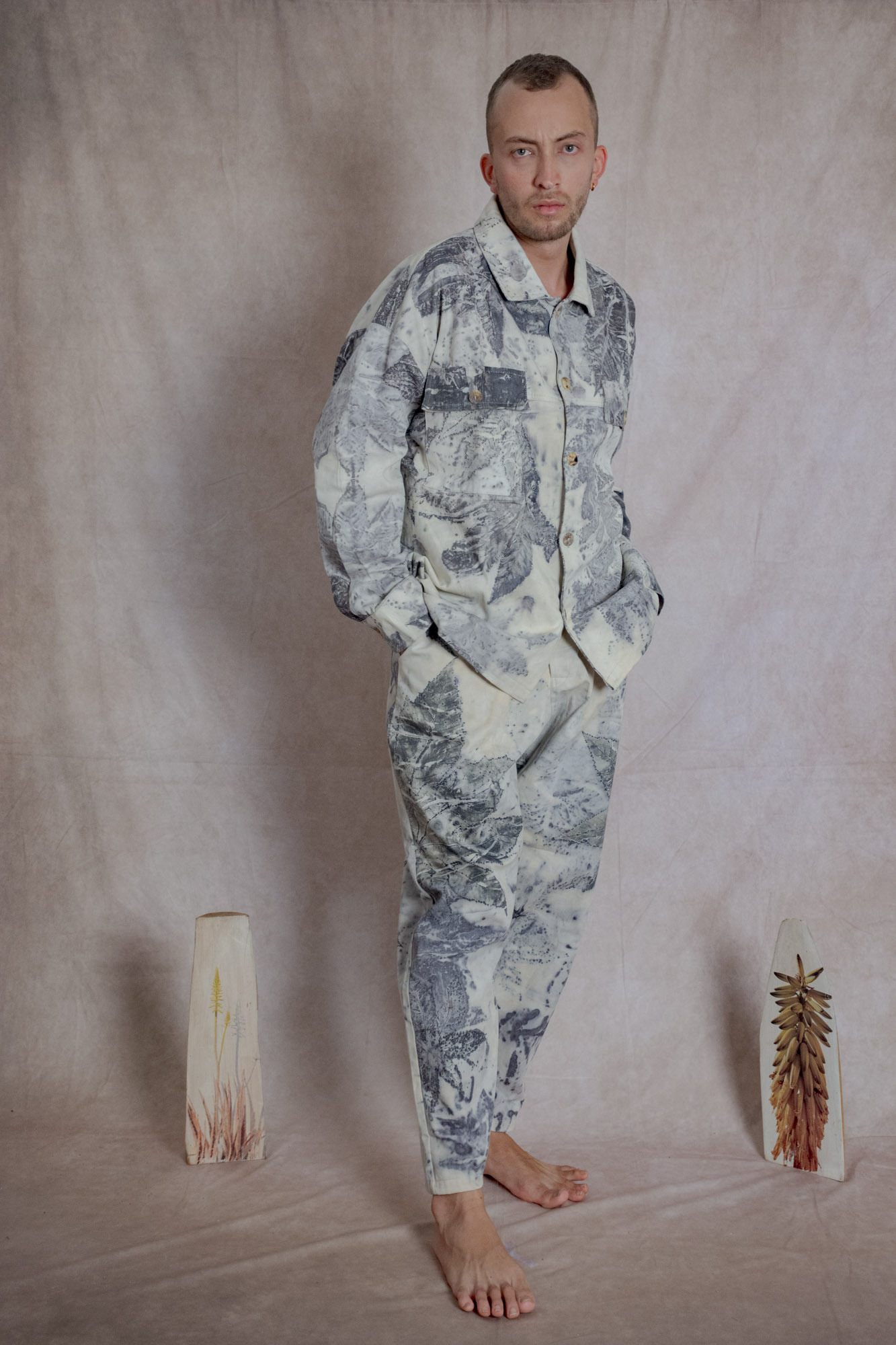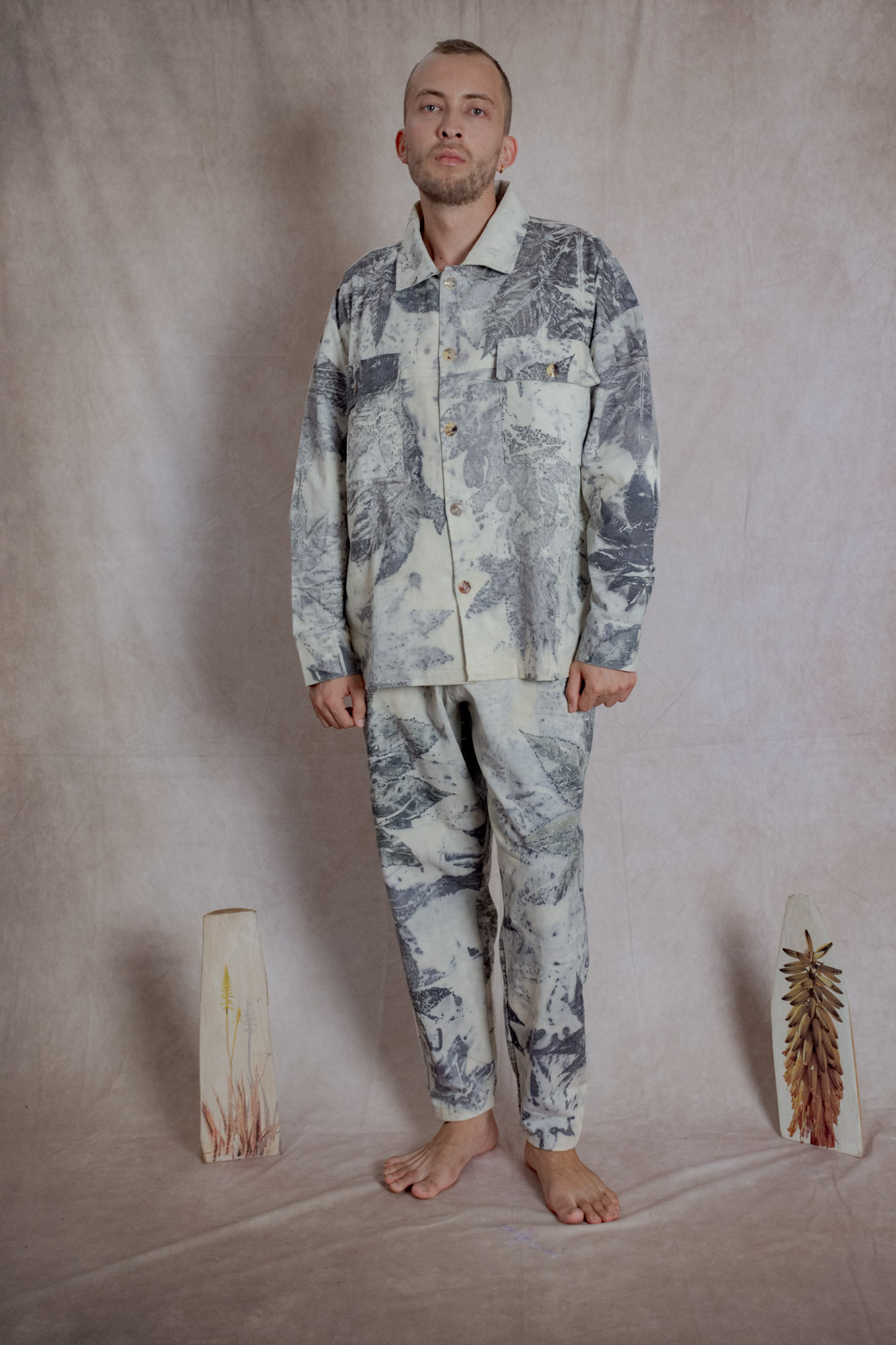 Envíos a nivel NacionalChaqueta estilo camisera con bolsillos frontales y laterales, teñida con tintes naturales y estampada con plantas. Pieza única e irrepetible.