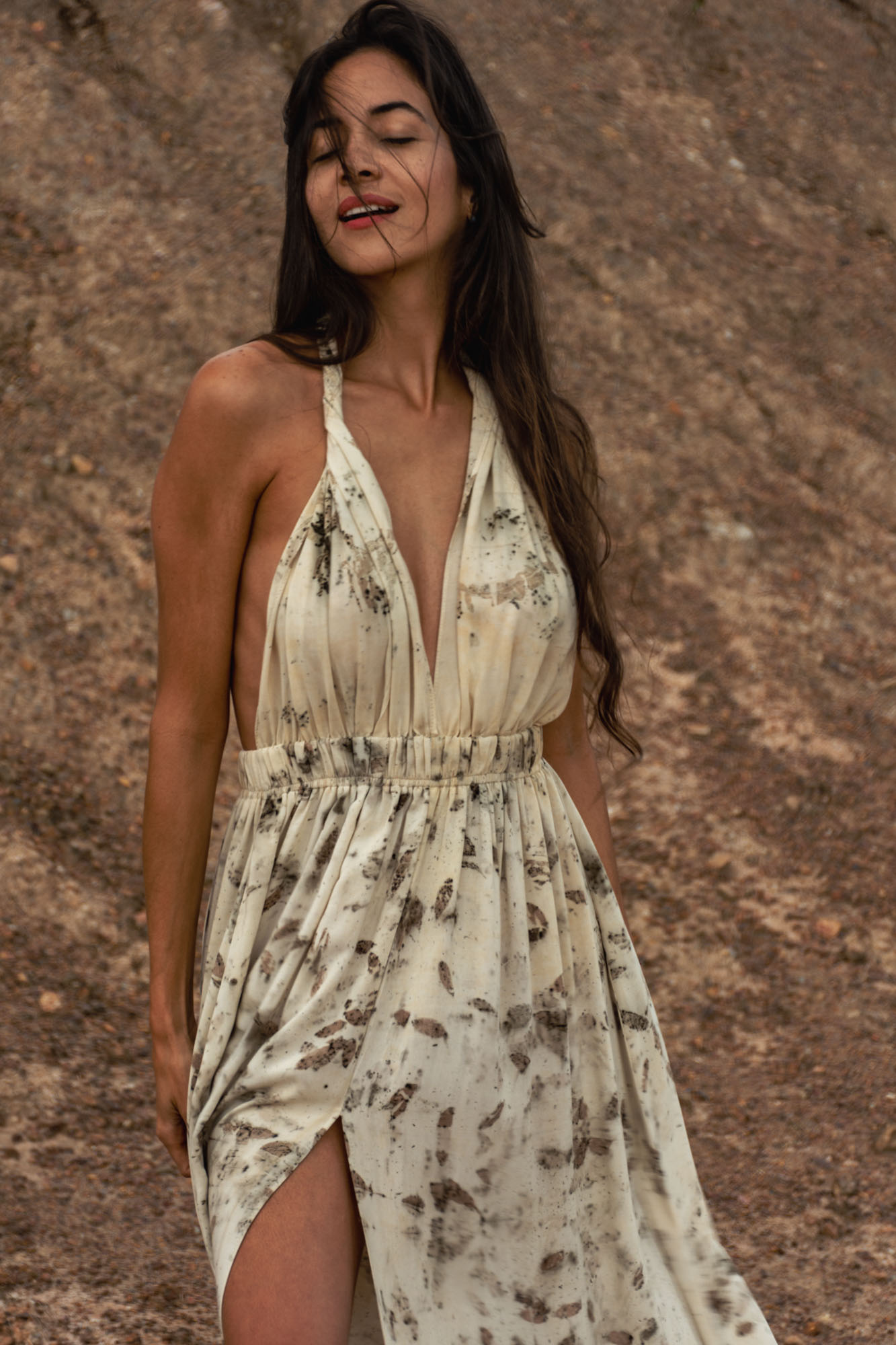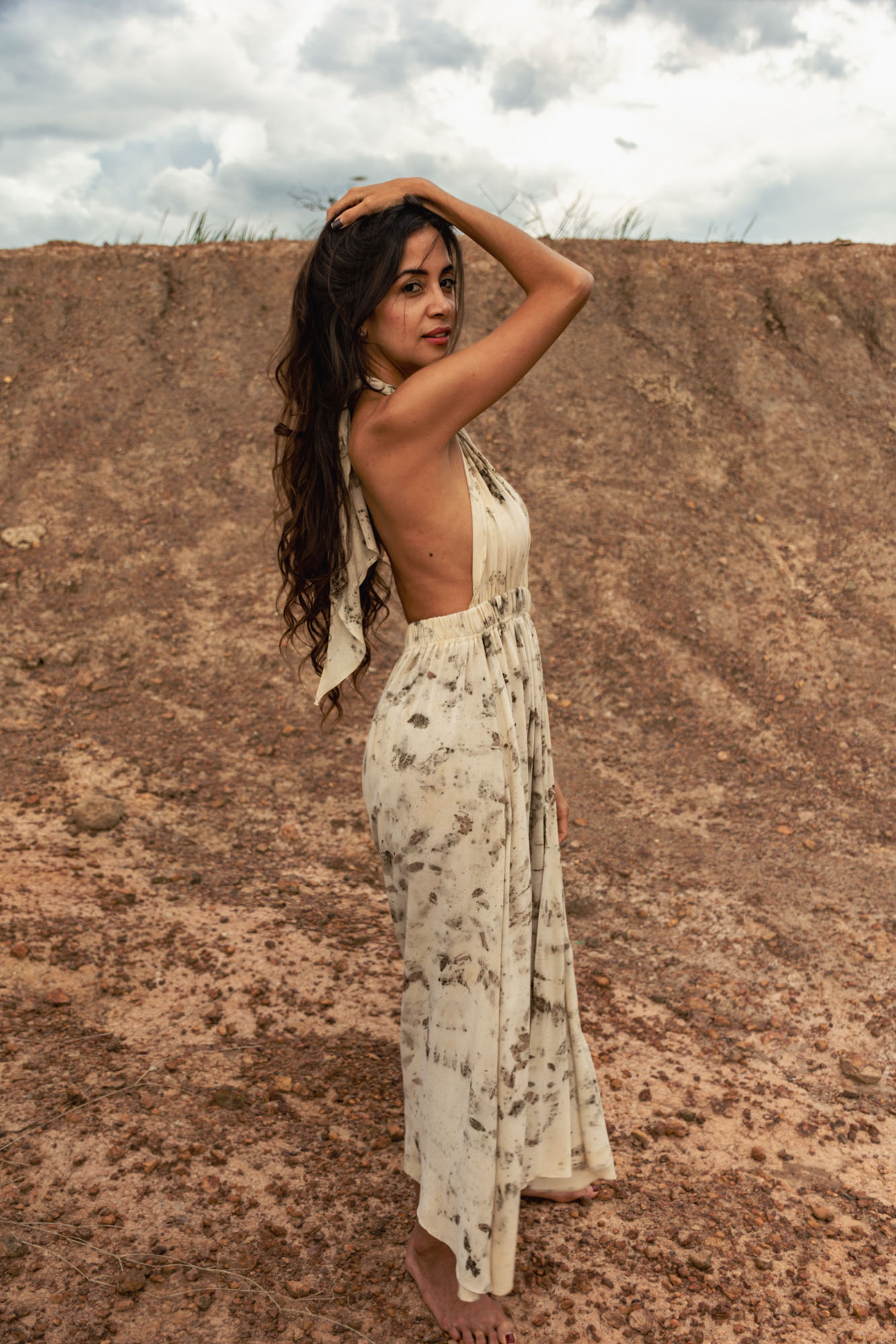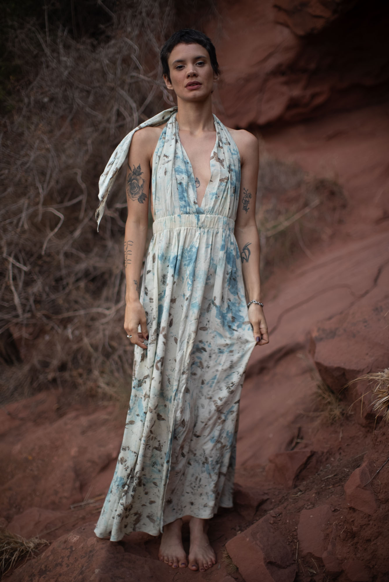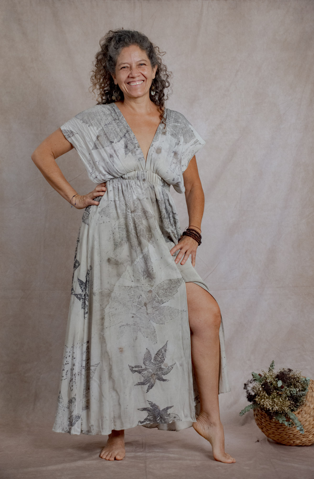 Envíos a nivel NacionalVestido doble propósito que se puede usar como vestido o como falda, teñido con tintes naturales y estampado con plantas. Pieza única e irrepetible.
