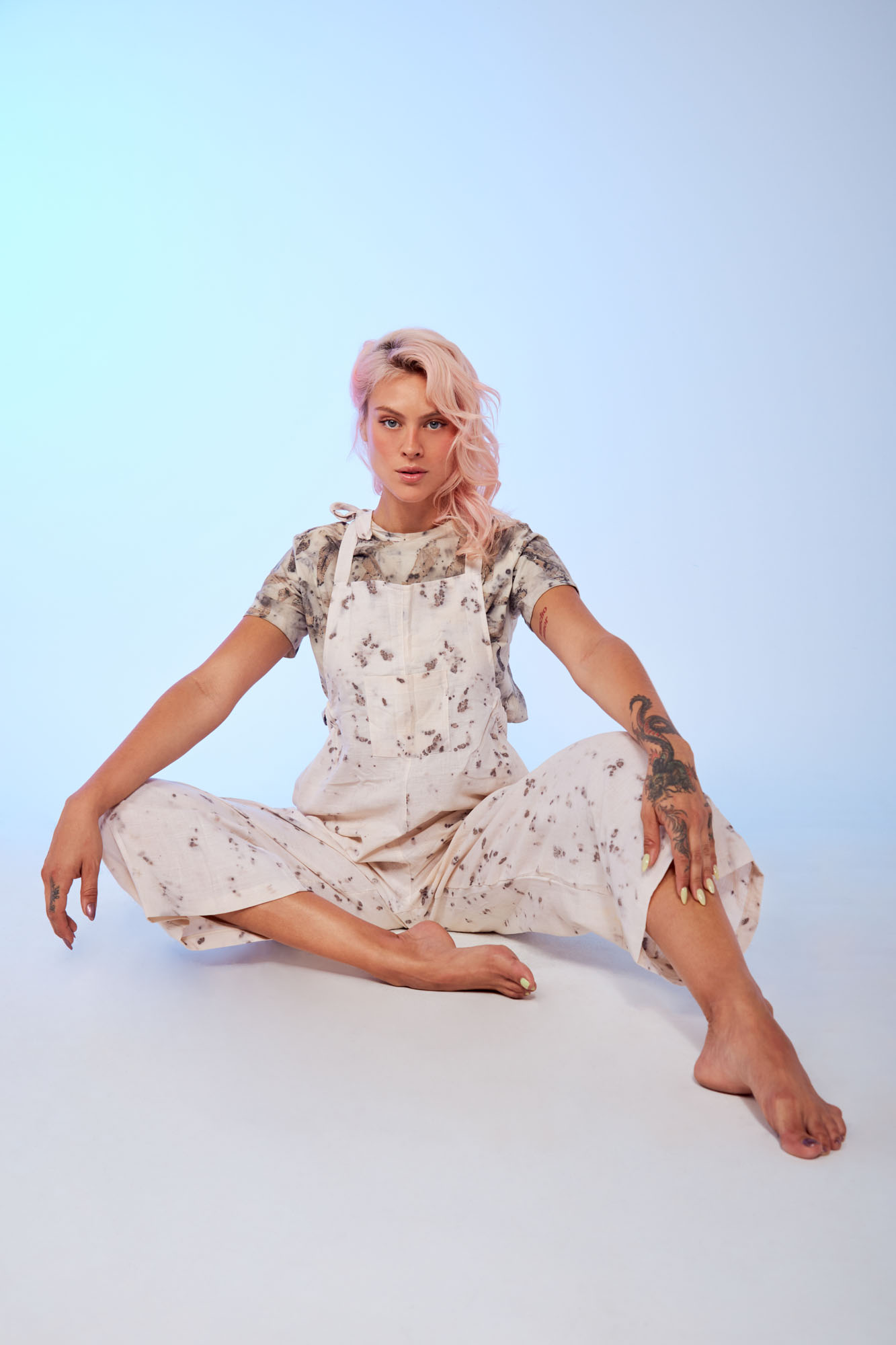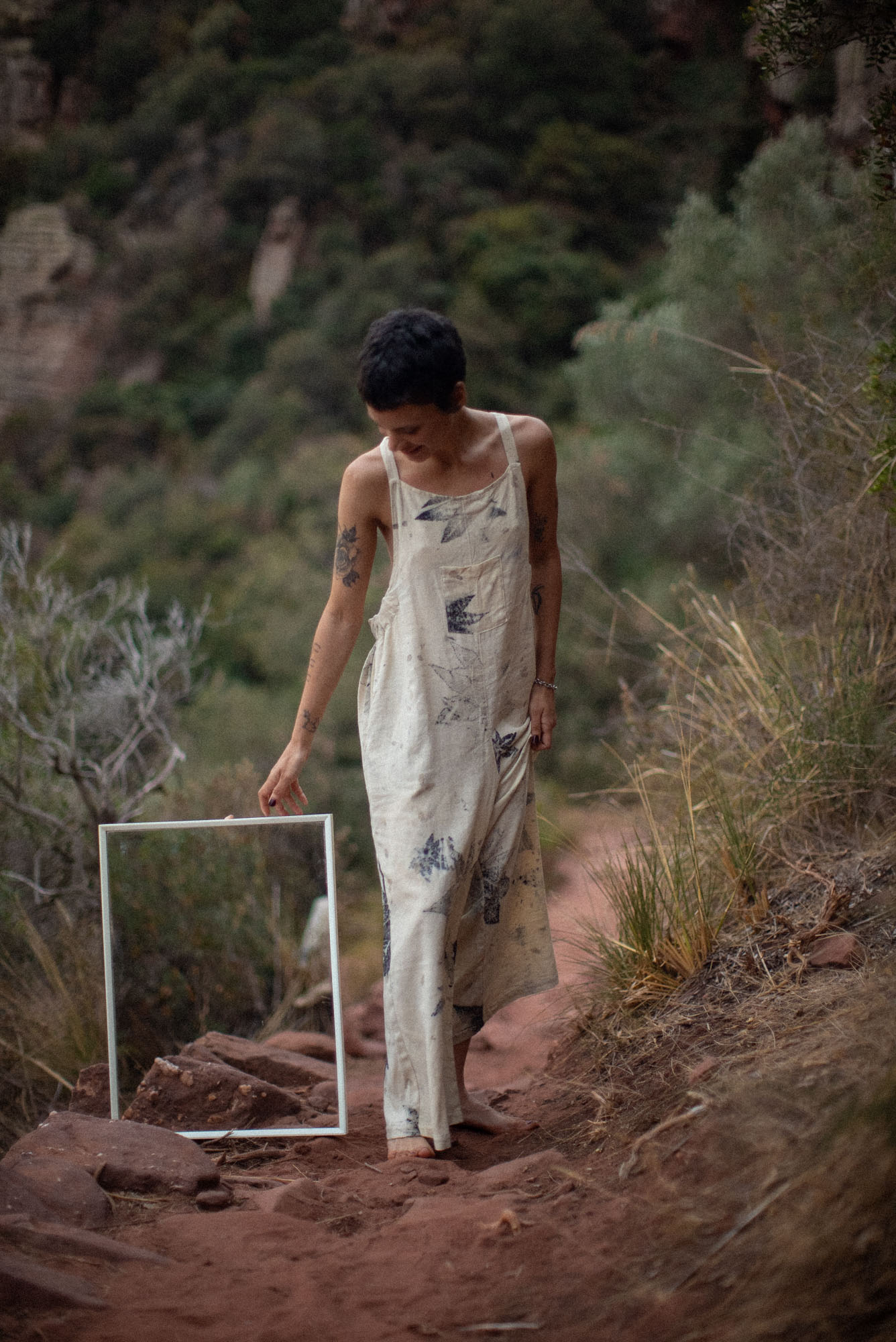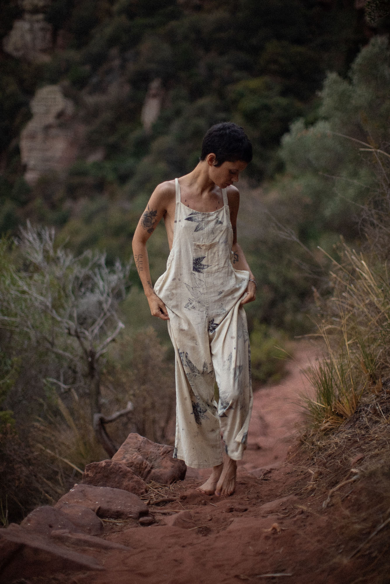 Envíos a nivel NacionalEnterizo clásico de amarrar a los hombros, teñido con tintes naturales y estampado con plantas. Pieza única e irrepetible.